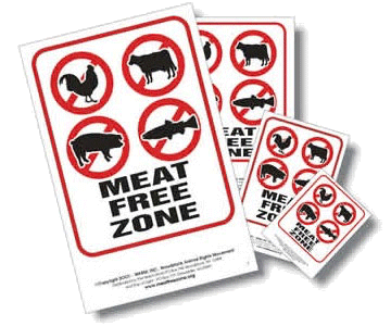 We hope you will help us with the Meat Free Zone™ campaign by putting the signs up in your homes and workplaces and by spreading them to all the vegetarian and vegan restaurants that you know and frequent. And someday we will have true meat free zones in establishments that serve meat.